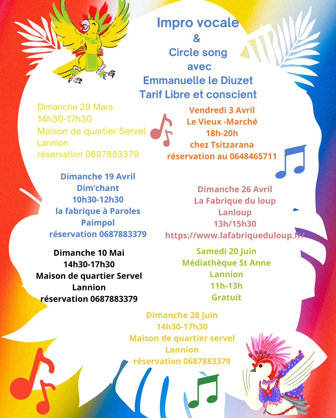 Emmanuelle Le Diuzet, artiste pluridisciplinaire partage son goût du chant populaire, de l'improvisation vocale et de la danse à travers des rencontres qui nourrit sa créativité pour la partager.
